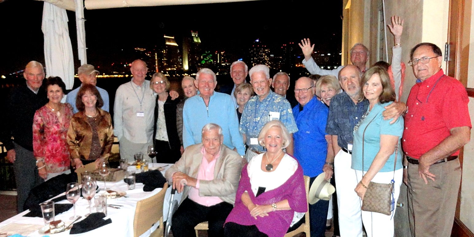 West Coast grads gathered in Coronado the weekend of 8-10 June. The event was hosted by RG Head, Howie Whitfield and Dick Doyle, with Carole Hoover Head providing the feminine touch. Attendees also included: Greg and Junie Boyington, Donna Doyle, Gary and Susan Gulbransen, Deke Johnson and Sue Stone Woodward, Miles Kaspar, Phil and Nancy Meinhardt, Jutta Whitfield, Van and Pat Van Inwegen, Ron and Connie Yates, Vic and Suzanne Yoakum, Bill Zersen, and Charlie and Kathy Liggett who were there celebrating their 58th wedding anniversary.