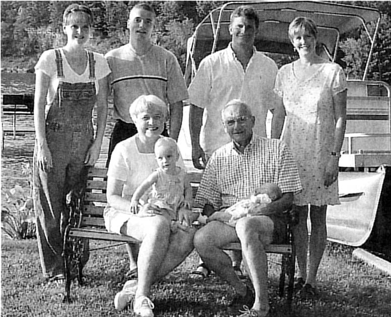 In front are Nancy and granddaughter Natalie, Ed holding grandson Nicholas