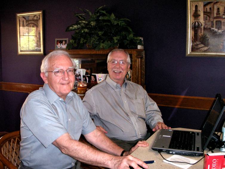 Here we are, hard at work, the old pro and the neophyte.