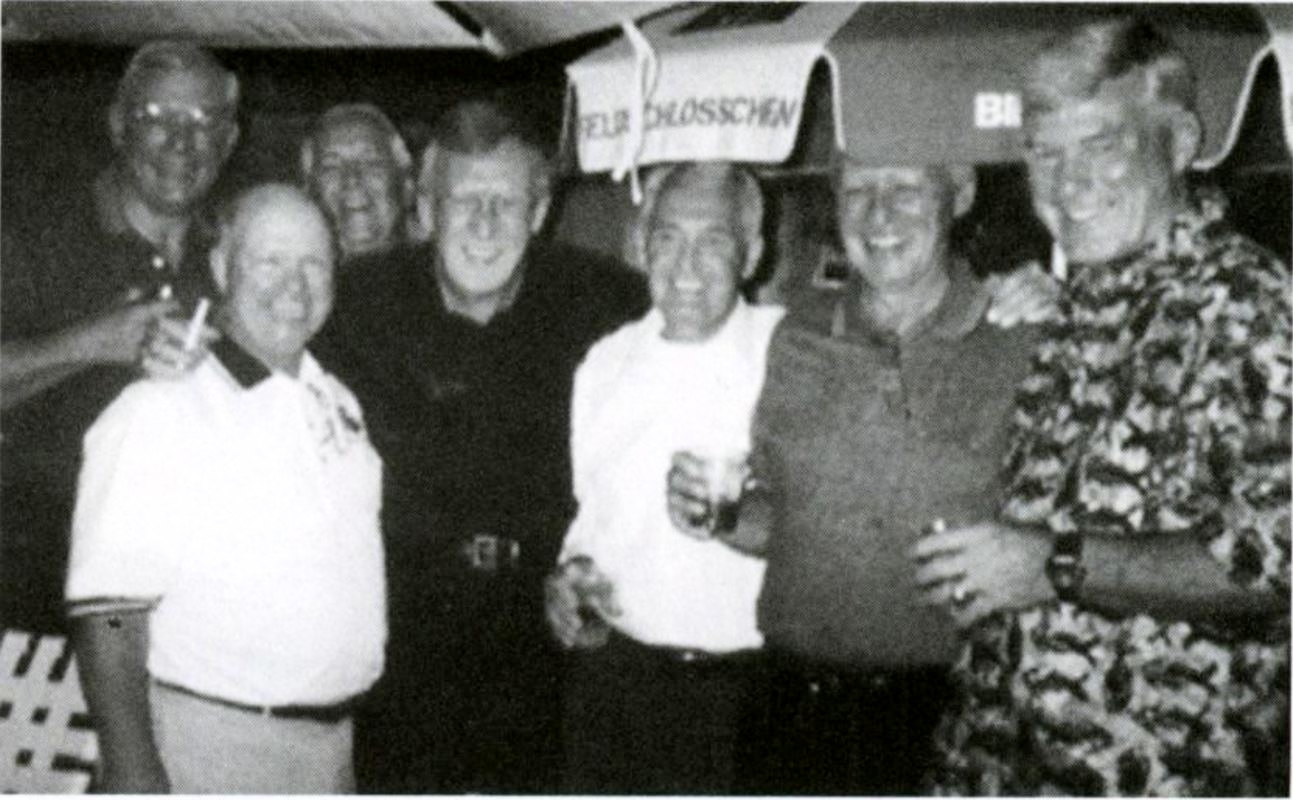The Foofaraw around our AFA-Army weekend November 2-4 began Friday afternoon at the YATES home, then to Broadmoor's Golden Bee. Saturday morning's GLAZA-Gate included steaks before we blasted Army 34-24, earning us the Commander-in-Chief's Trophy (which weighs 170 pounds, slightly heavier than our running backs). ESPN's "Game Day" program was broadcast from the quadrangle. Saturday night's dinner at the Radisson had 61 attending: BIANCUR & Carole, BRUSHes, BILELLOs, CLERs, Barbara CREW & Bob Dunn, DOUGLASSes, FISCHERs, FLYGAREs, FARQUHARs, GLAZAs & son Steve, KALEYs & Sue Woodward, KENDALLs, LUCK, MEINHARDT & sons & wife, MOSIERs & daughter Deb (with two USMA'93 grads), PORTER, PUPICHes, SAVAGE, SCHEHRs, SEXTONs, SCHWANKs, STUMM, WADDLE family(9), WALSH, YATESes, Vic YOAKUM & Diane (Jansen) Davis. Entertainment by the "Very Light Opera Company" included a skit panning the ancient Florian Philip MEINHARDT<.b>'s 67th birthday, with his hazy recollection of where he was the night President Lincoln was shot! We finished Sunday afternoon at BRUSH's Mayan Gardens. (Next year: AFA-Navy game October 12, 2002.)