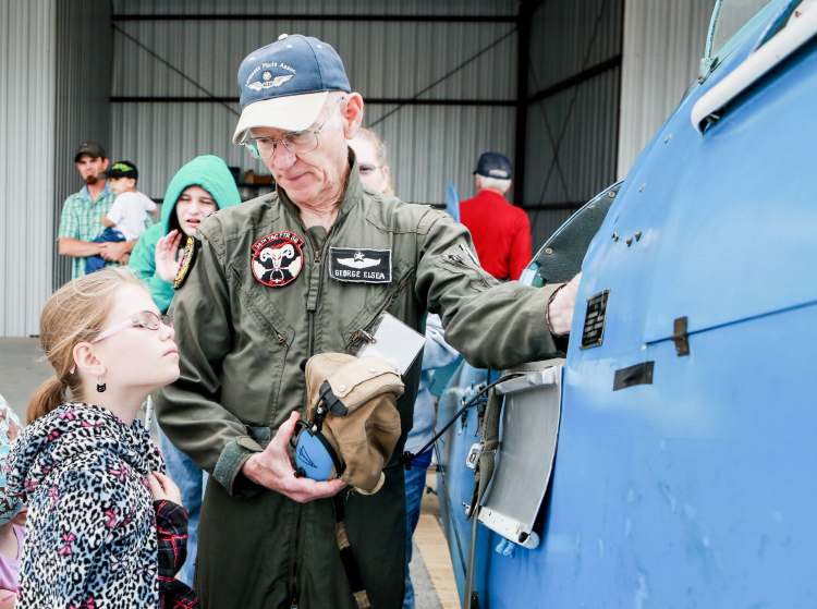 Besides the obvious, what do Dick Meyer, Bill Ouellette, Ralph Lalime, Bob Badger, Jerry de la Cruz, and R.G. Head all have in common? Ans: They all flew at one time or the other in the 1940 vintage de Havilland DH-82a Tiger Moth jointly owned by George Elsea and Mike Love who (along with two other pilots) purchased it in 1963 while they were stationed at Lakenheath, UK. The full story of Mike's and George's adventures with it is on our web site. The airplane is now based in Texas where George enjoys flying with friends or kids in the EAA Young Eagle program.
