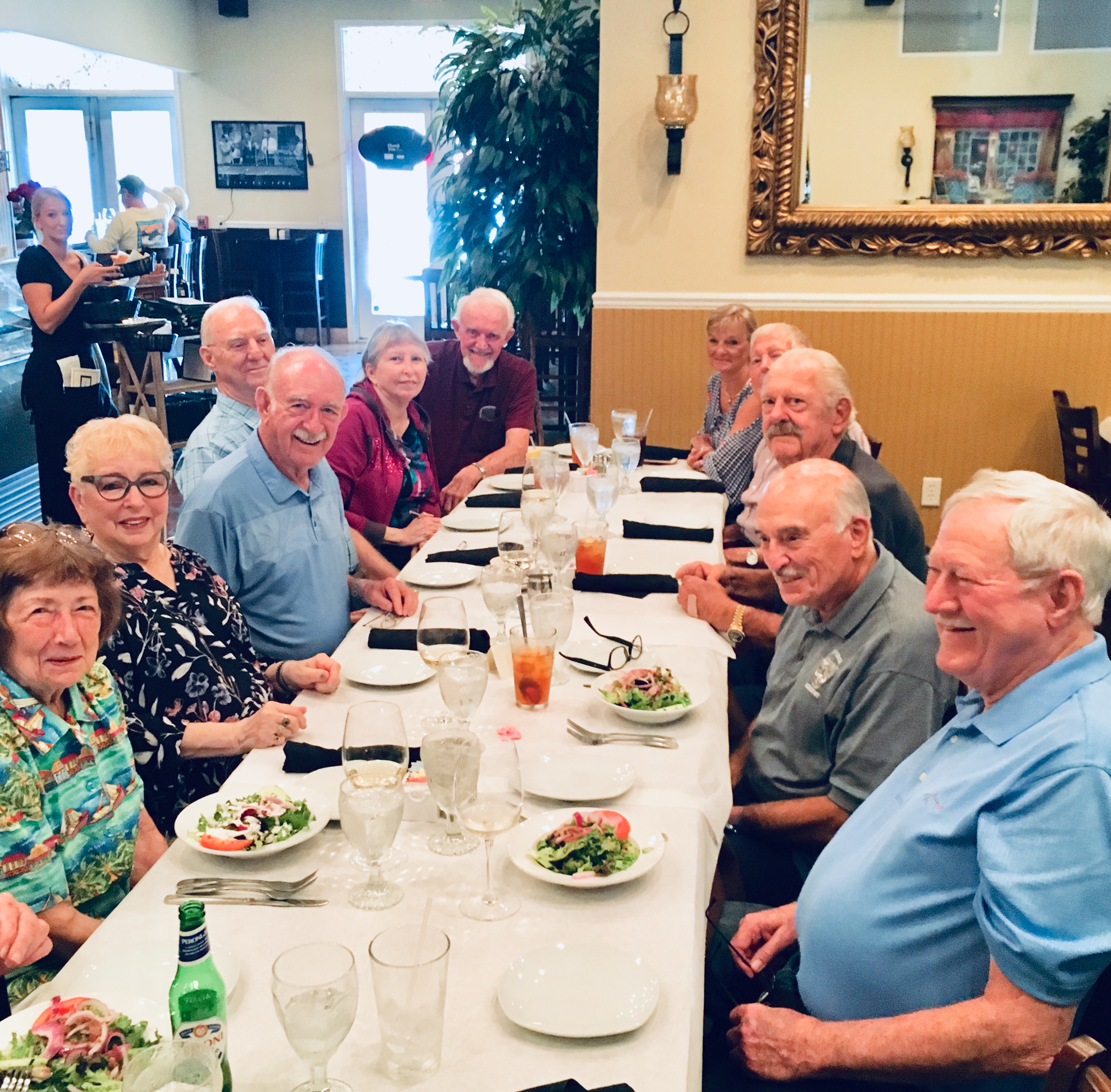 In late July, the Red Neck Riviera Mini-Reunionconvened in Fort Walton Beach, FL. The largest family group attending was Bill and Kath Gillis; their son, Sebastian; daughter, Cecilia; and her baby. The discussions were lively, alternating between who has the highest disability ratings to flying exploits in both the military and commercial aviation worlds. Mike Clarke’s experience flying some 60 different aircraft and Jerry Farquhar’s 26,000 commercial hours gave some authenticity the discussions. Our former flight attendant, Myke (Atwater) King kept the boys in check. Also attending were Rich and Marilynn Meyer, Aaron Thrush, Mike and Emma Clarke, Jon McClure, Pete King and your scribe rounded out the congregation. Frank Gorham is keeping the medical community in Panama City solvent; so, he and Faye could not make it. He intends to join us next year.