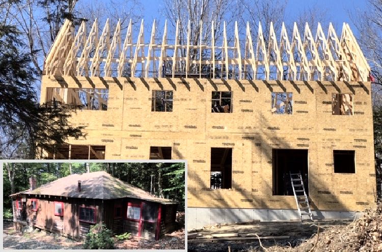 Don Stevens has begun a major rebuilding of his 1920s vintage "camp" in Dedham, Maine, as a tribute to his beloved Joannie. And to serve as a living repository for the memories of the summer camp that has been a constant in his family’s life for over half a century. Designed by his architect daughter, Kay, the rebuilding project is well underway. As seen in the picture below, the new building’s 24 rafters remind Don of the USAFA’s Chapel with its 17 spires, plus two for him and Joannie, plus the other five for their kids.
