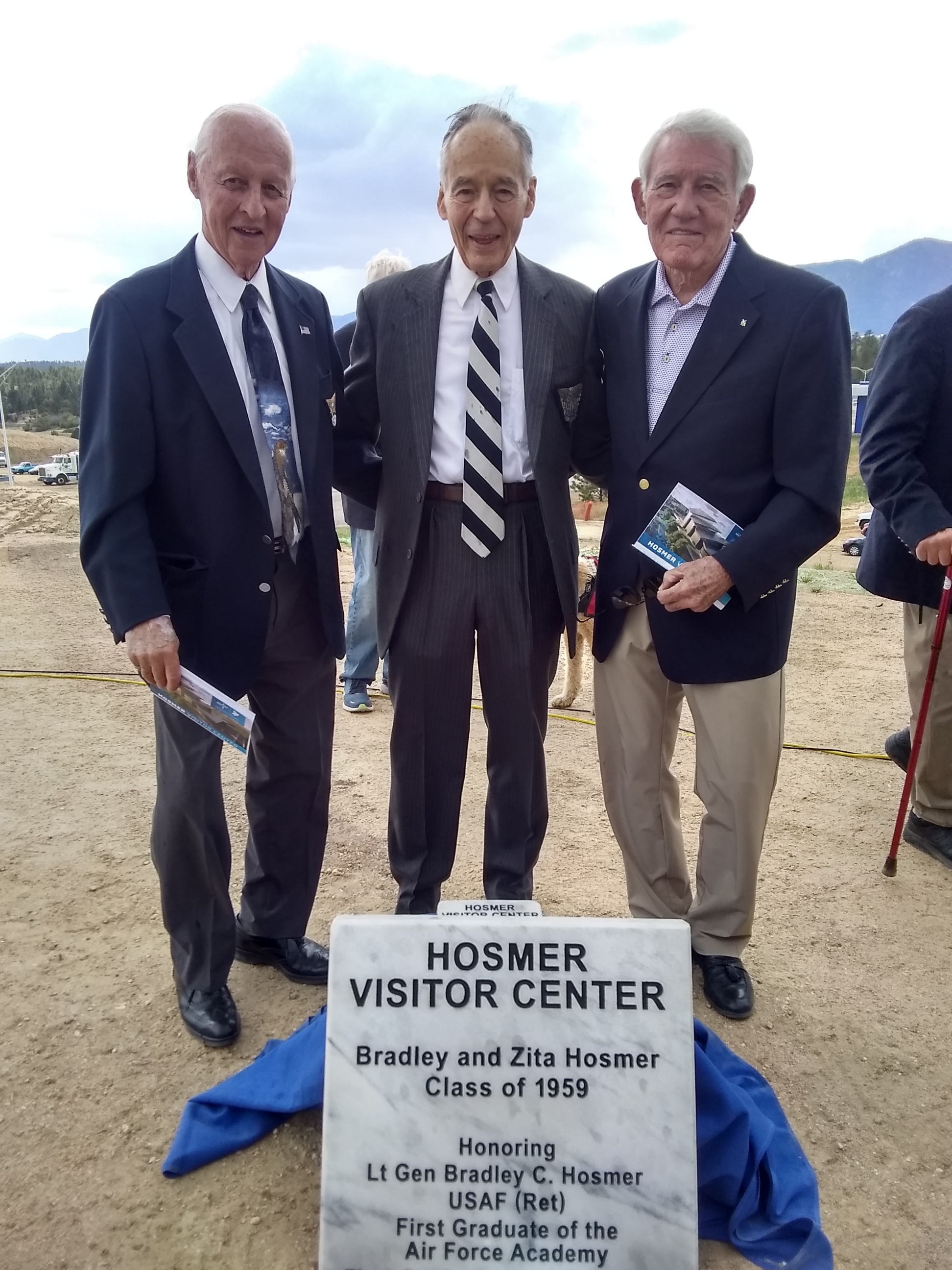Ron Yates and Jim Glaza attended the Cornerstone dedication of the new Hosmer Visitors’ Center, an impressive structure just east of the North Gate entrance. The Academy and the Class of 59, led by their new Class President, Max Miller, spent many months ushering the naming request through the Pentagon and Congress. It was not an easy task, as Brad is, thankfully, still alive. The choice of Brad for memorialization speaks for all graduates: he graduated first in his class; was our first Rhodes Scholar and our first graduate superintendent, among several other outstanding accomplishments. Ground has also been broken across the road from the Center for a four-star Academy-themed hotel, which will later be surrounded by several other business and entertainment structures. The Center and Hotel are being constructed on a fast track and should be finished in early 2024. Add the Chapel’s reconstruction to be finished sometime in 2025 and the Academy may be a desirable site for our 65th or 66th Reunion.