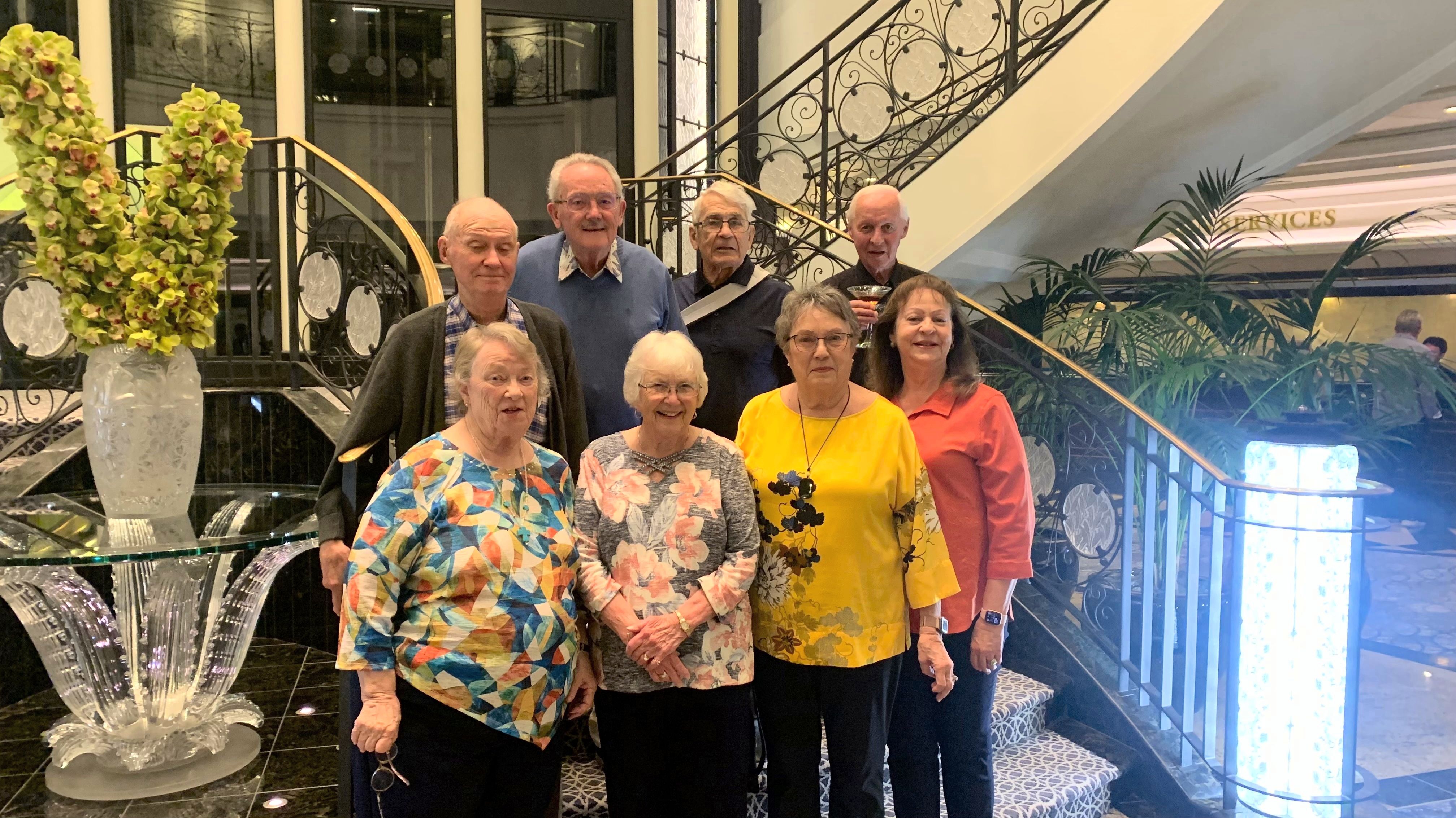 In late January, four of our adventurous classmates and their wives embarked on an eight-day cruise out of Miami, around the Yucatan peninsula. They visited Honduras, Belize, a private island resort, Roatan; and lastly, Cozumel. The specialty restaurants and onboard entertainment were so good that Jim Glaza and John McCullough opted to skip all the ports, except for a 30-minute walk around the pier at their last stop. Howie Bronson was the hero of the group. Just before starting the trip, he crushed his elbow chasing a run-away suitcase rolling down his driveway, but never turned back.