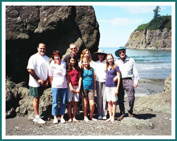 Rugged outdoorsman Howie Whitfield and wife Linda assembled their entire family at the beautiful Ruby Beach on the Pacific shore of the Olympic National Park in Washington State. Howie's description of those in the photo: "On the left is our son-in-law Dean Nicosia, next to his wife/our daughter Dawn, with their daughter Sarah (13); our son-in-law Eric Frey next to his wife/our daughter Lynn, with their daughter Erin (14); my wife Linda; Eric and Lynn's oldest daughter Lauren (15); and, that's me on the right with the hat."
