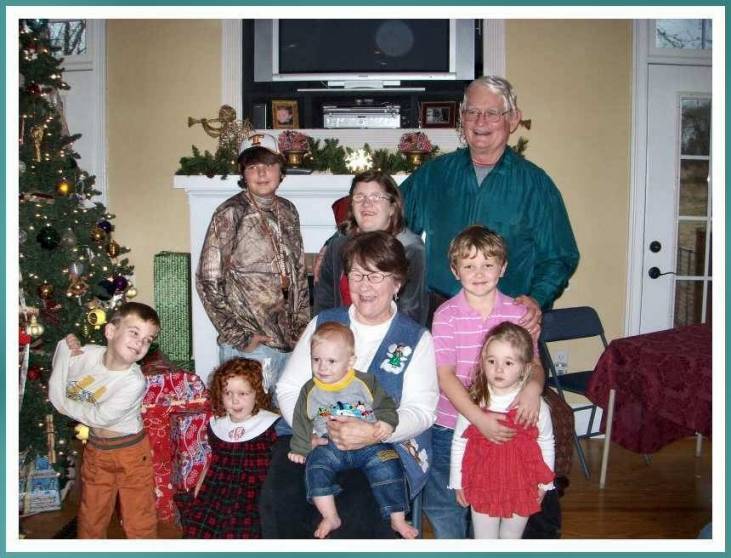 "I retired again from working as a contractor for the Army in Huntsville, Alabama," wrote one of my roommates from at least one lifetime ago--Russ Currey. "A couple of years ago I moved, with my wife of 25 years, Glenda, to a small farm in Eastaboga, Alabama. It's just across from the famous Talladega Racetrack, and I can hear the cars roaring even as I write this. It reminds me of all those years of living under the traffic patterns at bases around the world. I have a couple of cows and a bull, and spend a lot of time watching the grass grow and maintaining fences. We entertain our Atlanta, New Orleans, and Sacramento based grandchildren whenever possible. Mostly, it is very quiet and uncomplicated living. Glenda has three children and I have two, a boy and a girl. My son is in the Air Force, he's divorced, and his two boys live in Port St.Lucie, FL; he is in Diego Garcia on a one-year remote. My daughter has two young boys, including the eight months old baby who is shown in the photo; Glenda's son designs golf courses and lives in Atlanta, his two boys and a girl are also in the photo; Glenda's daughter is an architect in Sacramento, CA, she has a little girl, and another daughter who is handicapped and lives in an institution here in Eastaboga (which is the reason we moved here three years ago)--she is also in the picture. I have talked to Jim Thomasson and Kirk Canterbury this year, Dale Mayo also called recently, and we reminisced about being at Thomasson's wedding in 1960, right after graduation. Hope to see you all at the 50th."