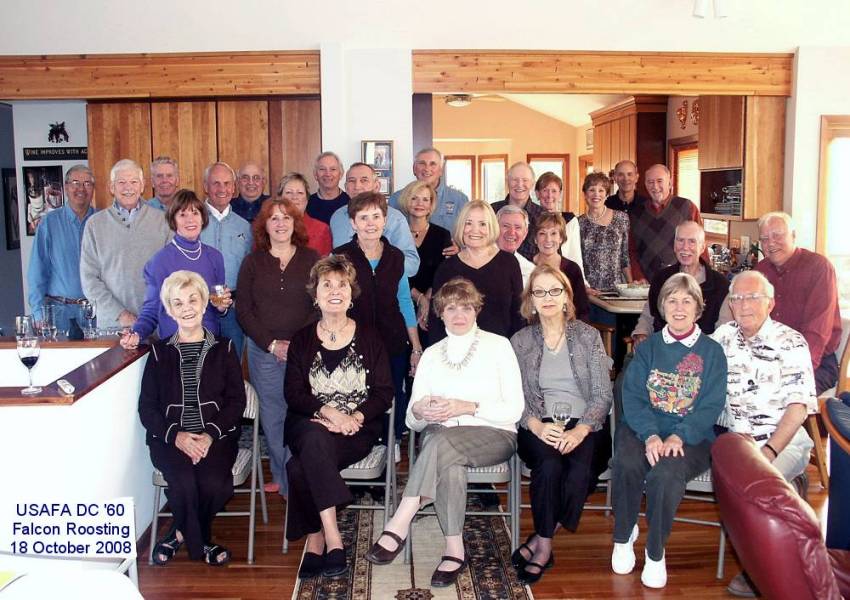 Attending our InterService weekend 3-4 October, 2008 around the AFA-Navy football game were: Brian & Carol Kaley & Sue Woodward, George & Diana Pupich, Bruce & Caryl Mosier & daughter Valerie with husband Rick Reeder & daughter Cari with husband Mike McAnarney & daughter Debbe Mosier and friend Jennifer Burke, Jim & Jenny Glaza & Linda, Andi & Carole Biancur, Ron & Connie Yates, Jon McClure, Bill Goodyear with high school classmates George Van Houten (USNA '60) and Norwood Gay(Naval Officer), Denis Walsh, Jerry & Dotty Farquhar, George Fries, Dean Bristow, Earl & Pat Van Inwegen, George & Carolyn Luck, Walt & Elaine Futch, Gordon Savage, George & Janet Collier, Les Hobgood, Bill Gillis with sons Thor and Glen, Ed & Suzanne Leonard, Dick & Sally Sexton, Tom & Carole Seebode, Jock & Hope Schwank, Wayne & Barb Kendall, Les Querry, Tony & Carol Bilello, Deanne McCullough & son Jake, Fred & Mary Lou Porter, Paul Sullivan, Dona Stumm w/ sons Randy & James(introduced at Saturday's dinner). Friday's dinner was at the Hilton Garden Inn, Saturday morning's tailgate was a catered lunch and drinks at Jim & Jenny Glaza's FalconMobile, then that disappointing loss to Navy; on Sunday morning, Jack & Elaine Brush hosted a brunch at their mountainside villa.