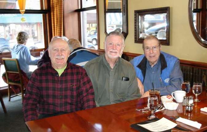 "We try to get together monthly in the Seattle area, sometimes Tacoma or Everett, occasionally Sedro-Woolley or Astoria," wrote George Luck. "In January (2009), we met at Hector's in Kirkland, attended by Nels Delisanti, me (George), Jim O'Rourke, Chuck Diver, Dennis O'Keefe and Vic Yoakum. In February at the same place, it included Chuck, Dennis and George (see photo); and in March it was once again at Hector's in Kirkland, WA at noon on Wednesday the 25th." (Note: Bill Zersen was in California for the winter, and rejoins the group in May).