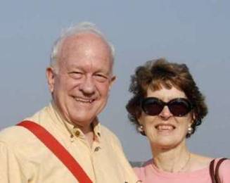 One way to see what Bob and Jane Odenweller are doing is to look at various entries in Bob's diary (these are just a few items from that log): "Made Honorary Life Fellow of Royal Philatelic Society of New Zealand. Returning to working on my book. Jane and I go to London in March, where I serve on the Board of Election of the Roll of Distinguished Philatelists. Sign the Roll in Manchester late July. Jane and I travel to Venice in October to see daughter Liesl and family, and then drive through Croatia. Opera-singer-daughter Liesl is performing as Cleopatra in Giulio Cesare (Julius Caesar, opera by Handel). Granddaughter Anna was in children's chorus for Mahler's Third Symphony at opera house in Venice; stayed with us while mother Liesl was rehearsing, she's now five, and Anna begs to see Wagner's Ring Cycle. Jane's mother is now 99." (Photos: Left--Anna with her mother Liesl; Right--Bob and wife Jane).