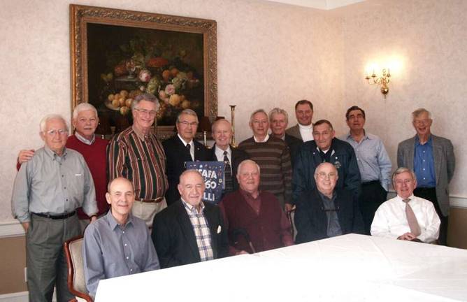 At their luncheon, "Ken Alnwick presented information on the VA and how they work with us old vets to get well-deserved benefits, and still works with the Naval Research folks; Ken is also helping Norm Haller work on the AF Library at the Randolph-Macon Academy in Front Royal, VA, so if you have AF memorabilia you would like to see preserved, get in touch with Norm," wrote Tony Burshnick. "Joe Higgins is trying to sell his condo in Charlottesville, VA, while Bill Carnegie enjoys his new home in Shenandoah, VA and just returned from visiting son and grandkids in Guatemala. Bill Taylor works his butt off trying to help the AF decide how much time to devote to flying sorties and how much to spend in the simulators; Bill's son was just made Maintenance Group Commander with the AZNG. Bob Badger had nothing but praise for Bob Odenweller and all the help Bob has given him to finish his novel. Mike A. Clarke noted that wife Nancy will be retiring soon from her White House duties. Mike Loh gave a rundown on how well his grandson was doing in hockey and hopefully will be selected for USAFA. Al Johnson put his Alexandria, VA house up for sale and is (finally) moving to Maine. Jerry de la Cruz received an award from the National Gallery of Art for ten years of dedicated service. Les Querry asks all of us to put 4 October on the calendar for his Falcon Roost. Bill Hockenberry is busy advising on plant closings and union issues. George Fries stays busy helping MOAA with ROTC at two colleges and Junior ROTC at 11 high schools. Leon Goodson works and rides his motorcycle "when he wants," and summer includes a European vacation with the grandkids. The next luncheon is 9 July 2009--our 53rd anniversary of the day we entered the Academy."