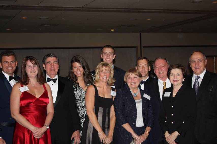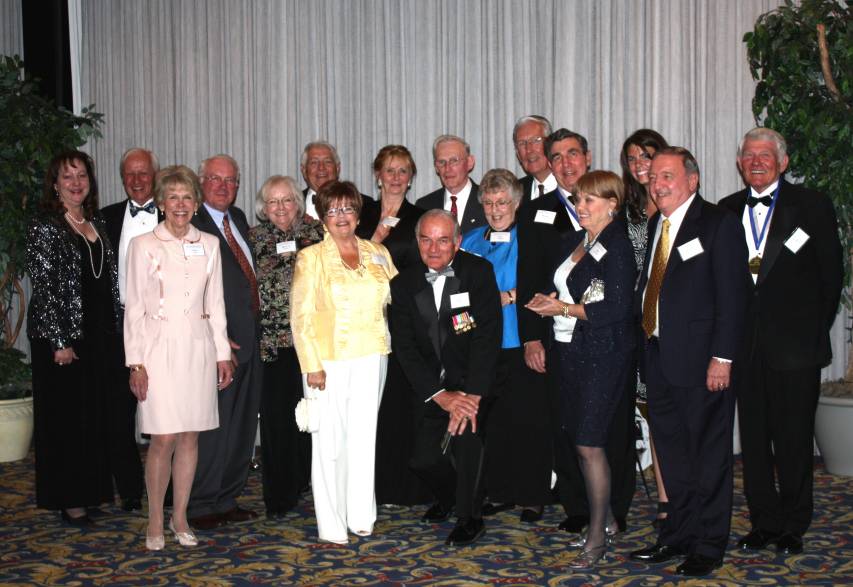 Left to right: Jeannette & Jim Glaza, Connie Yates, Fred & Mary Lou Porter, Caryl & Bruce Mosier, Andi & Carole Biancur, Dick Sexton, Mary & Duck Waddle, Linda (Mike's sister) & Bill Kornitzer, Mike & Heather (granddaughter) Loh, Ron Yates (Missing Denis Walsh).