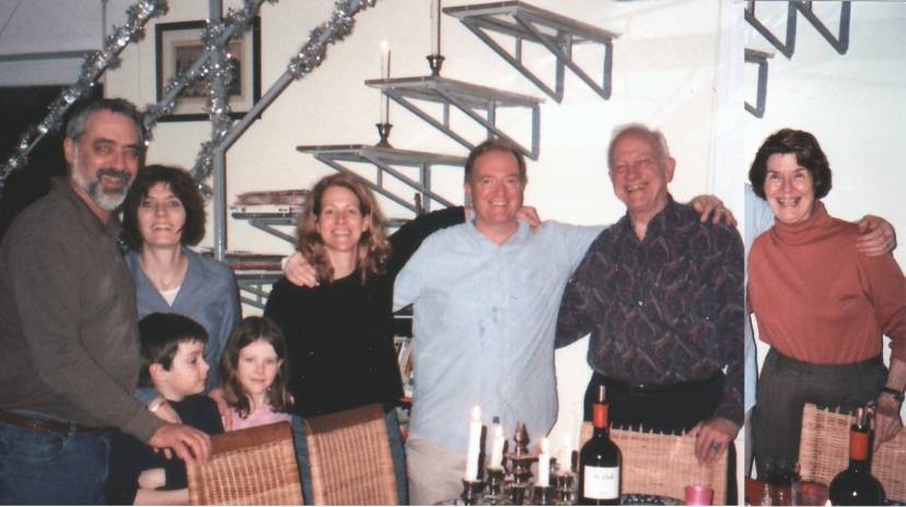 "May 2010 will be a doozy," wrote Bob Odenweller. "I leave for London on the 4th for a two-day display at the Royal Philatelic Society. This will be the first time the other Royal Philatelic Societies have all gathered under one roof. On May 7th, I'll move to the Islington Hilton, where the decennial international competition will be held, and I'll represent the U.S. as a judge, until the 16th. Most stamp collectors consider this show to be the granddaddy of all international shows. Jane will join me on the 11th, and then go on to Venice to see daughter Liesl and family. I will then complete work on the exhibition catalogue for the annual national show"Nojex--and be host for the jury. Somewhere along here, I will finish work on the next issue of my magazine, The Collectors Club Philatelist, before leaving for Washington to participate in two days of meetings at the Smithsonian's National Postal Museum, where I am on the Council of Philatelists." In the first photo, which is a composite of the entire family in Venice on Christmas Day taken at daughter Liesl's house, that's Dr. Kevin Johnston (Joy's husband), Dr. Joy McCorriston (stepdaughter), Liesl, her husband Frank O'Halloran, Bob and Jane, and the two children in front are Keoki (Joy's son) and Anna (Liesl's daughter). In the second photo, that's Jane's mother at her 100th birthday party, flanked by daughter Liesl and stepdaughter Joy.