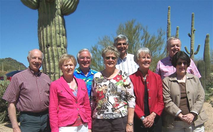 "Four members of '60 have married a small group of remarkable girls that graduated from St Mary's Academy in 1958," wrote Tony Bilello. "St Mary's is a Catholic High School in Denver. Wayne Kendall married Barbara Bazata, Ron Deep married Carol Kornemann, and Carol TeBockhorst married Tony Bilello. Jim Bujalski and Judy Rodrique/ Sims had dated during our academy years, but went separate ways. Both married and raised great families; when their spouses passed away, they found each other and married in 2004. The 35 girls of St Mary's '58 class decided on a reunion in Scottsdale, AZ for 25-28 March, 2010, when they would be celebrating turning 70. Wayne/Barb and Ron/Carol flew in, Tony/Carol drove from Denver, and Jim/Judy camped at a Phoenix resort nearby. We started at the Westin-Kierland Hotel in Scottsdale; during the next few days, we toured Taleisin, the summer camp of Frank Lloyd Wright, a couple of cactus gardens, a bit of golf, a snort here and there, and lunch at one of the local homes." Tony Bilello