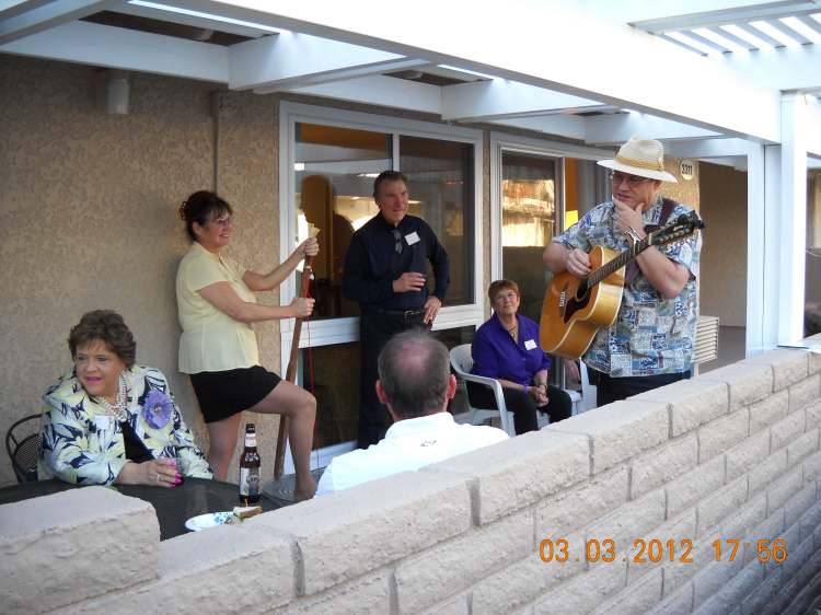 By the way, the temp hit about 75 and it was a beautiful day!!!!!!!!!!! And where are you living? We were able to use Bill’s porch; therefore, we serenaded the local community – this included a number of people walking by (probably to see what was going on!).