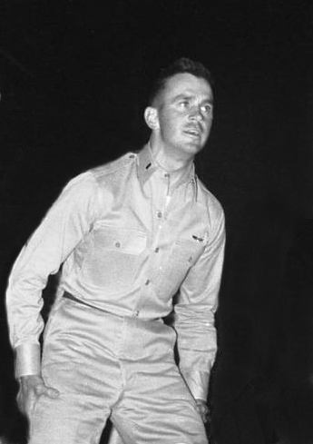 On the evening before our first football game of the season it was a very pleasant evening. The entire wing had gathered in the quadrangle that was surrounded by the various two-story dwellings referred to by some as "seven minute shacks," noting that within seven minutes of being set ablaze they would be nothing but ashes at ground level. A familiar face appeared at the second story fire escape of one of the Fifth Squadron buildings, an Air Training Officer most noted for leading the "Spirit of the Bayonet," Lt. Joe Yeager.
