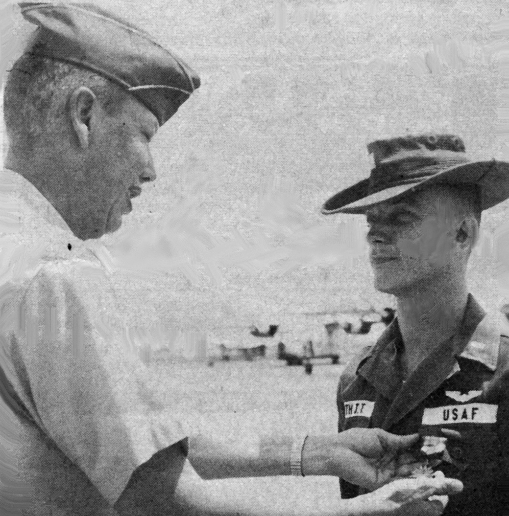 In 1965, George Pupich had two jobs in Vietnam--Aide de Camp to Lt. General Joe Moore the Commanding Officer of 2nd Air Division (his real job), and an A-1E slot in the 602nd Air Commando Squadron (the job he relished). In his aide capacity, George worked a lot with former AOC Ken Tallman, General Westmoreland's Chief of Staff, and was instrumental in having General Westmoreland present Howie Bronson the Silver Star for his work as a FAC. He was also present when RG Head came in "glassy-eyed" from an early morning mission to a memorable location'Khe Sahn. George got to see a great deal of the "inside" activity pertaining to the war by being Moore's aide, but he deemed that that was a mixed blessing: "I became very disenchanted with Secretary of Defense, Robert McNamara and President Lyndon Johnson. Those observations led me to resign my commission exactly one year after I completed my RVN assignment."