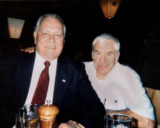 "This picture was taken in Washington, DC when Sally and I were there for a VFW function. Just so you know, the old and very distinguished looking gentleman in a suit and tie is Tony, and I--Deke Johnson--am the young, good looking sex symbol. Sally is not doing very well with the after-effects of her chemotherapy and radiation. Her balance is poor and she uses a walker or a wheelchair. We still manage to travel a little, and went around Cape Horn in South America on a cruise last March and just got back from her high school class reunion in Waterloo, Iowa. I am headed back to the Academy for a Cotton Bowl Team reunion in November."